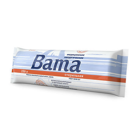 Вата медицинская гигроскопическая хирургическая, 250г стерильная