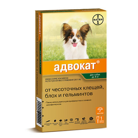 Адвокат капли на холку для собак до 4 кг пипетка, 1 шт.