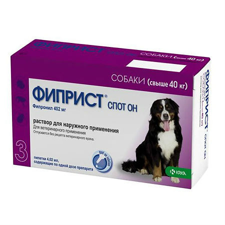 Фиприст Спот Он капли на холку для собак свыше 40 кг, 4,02 мл пипетки 3 шт. (в..